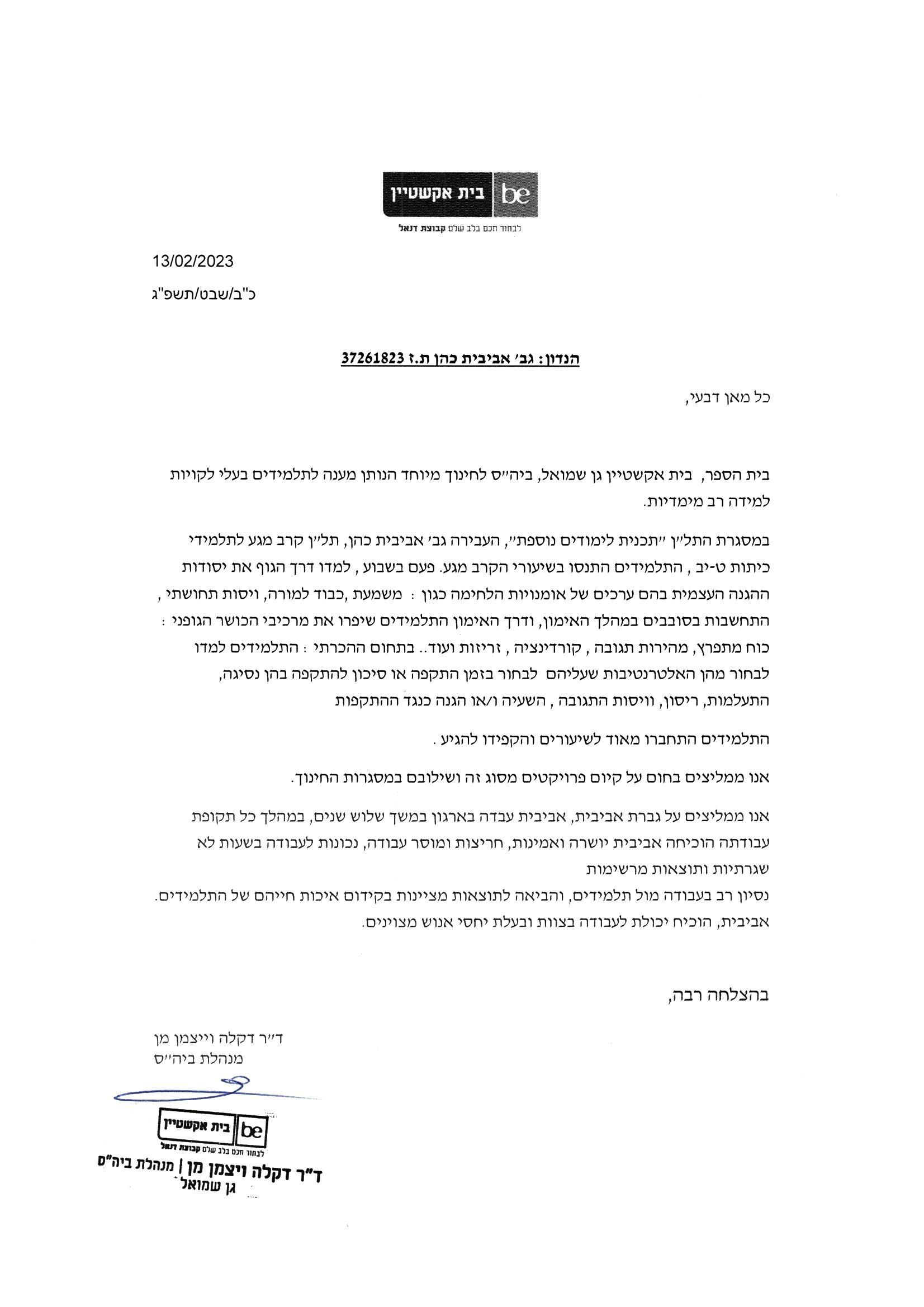 הנדון: גב' אביבית כהן ת.ז 37261823